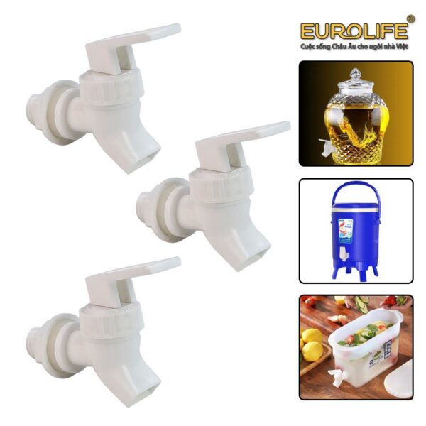 Bộ 3 van bình nước, bình rượu nhựa PP trắng, ren 21mm Eurolife EL-VBN01 (Trắng) (3 cái)