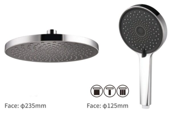 Đài sen với thiết kế tròn, đường kính 235mm, tạo áp lực mạnh mẽ, giúp người sử dụng như được tắm mưa. Tạo cảm giác sảng khoái cho cơ thể khi tắm gội. Mạ Chrome 2 mặt, sáng bóng