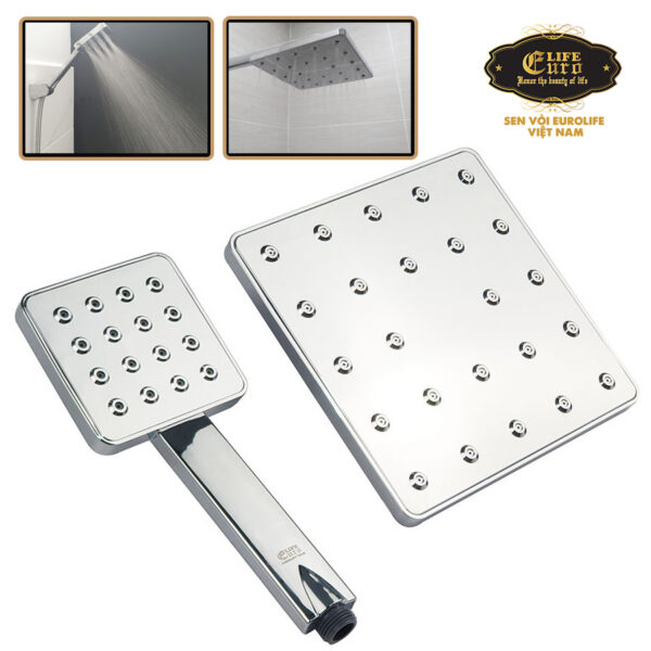 Bộ đài sen, tay sen vuông nhựa ABS mạ Chrome cao cấp Eurolife EL-DSV20 (Trắng bạc)