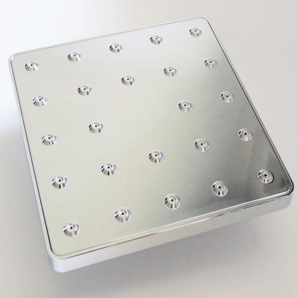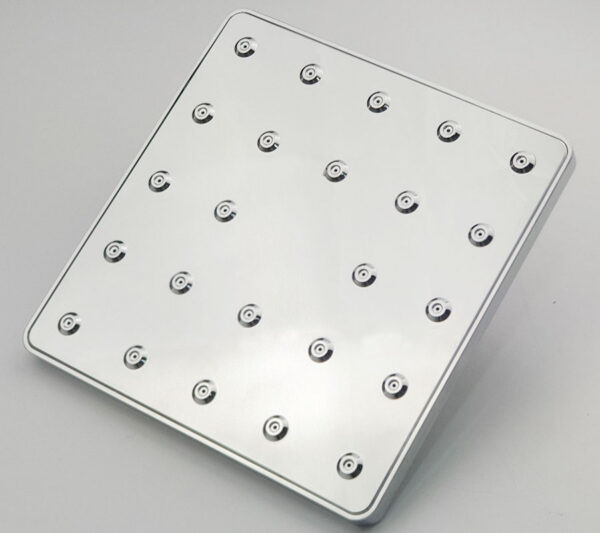 Đài sen lớn được thiết kế với nhựa ABS mạ Chrome toàn bộ sáng bóng. Kích thước mặt sen : 20cm . Độ dày 1.4cm