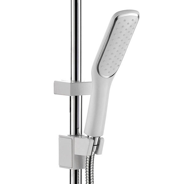 Tay sen 1 chức năng chảy, được làm từ nhựa ABS màu trắng sữa kết hơp viền mạ Chrome sáng bóng. Dây sen dài 150cm