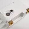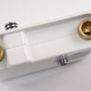 Thân vòi được thiết với hình dạng bo cong, mạnh mẽ. Tay mở nguồn nước và núm chuyển chế độ nằm mặt trước vòi tiện dụng. Thiết kế hoàn hảo với lõi Đồng kết hợp vỏ nhựa ABS trắng sữa cùng mặt trước bằng Inox 304 màu Gold rose sang trọng