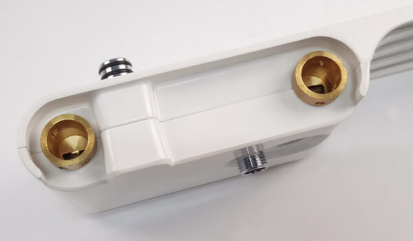 Bát đỡ ống sen được đúc bằng nhựa ABS định vị sẵn, dễ dàng lắp đặt chỉ với 2 ốc vít và tackle đi kèm cùng 1 lắp chụp bên ngoài