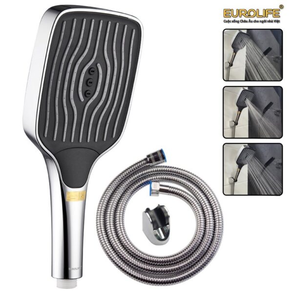 Bộ tay dây sen 3 chế độ phun nước Eurolife EL-125SH-T (Trắng bạc)
