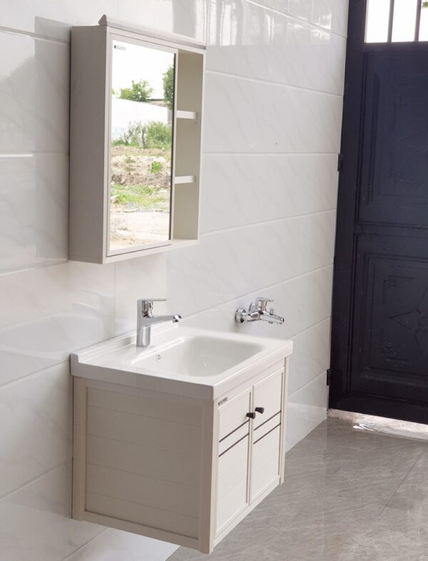 Tủ được làm từ chất liệu Nhôm Aluminum chất lượng cao, phủ Melamine bền bỉ. Chất liệu Nhôm có khả năng kháng nước chịu ẩm cao, phù hợp với môi trường phòng tắm