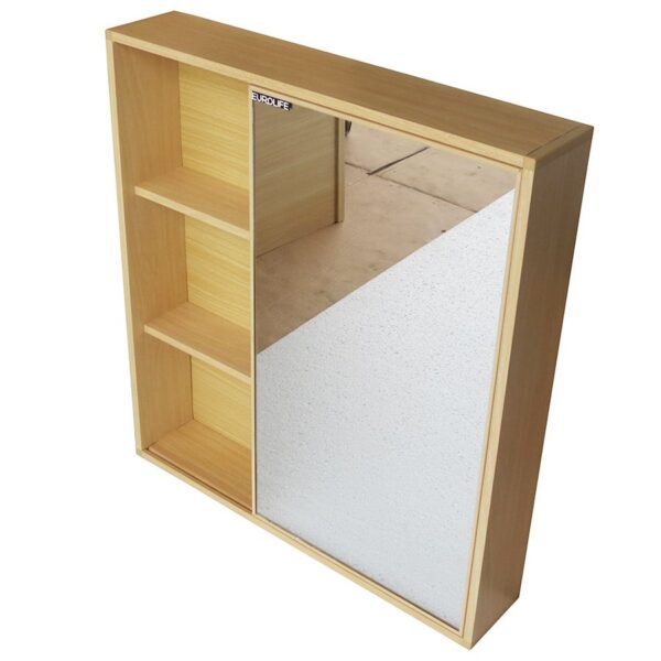 Tủ gương được thiết kế đơn giản với kích thước 600x650x125mm. Bên trong có 3 ngăn để các vật dụng cần thiết sử dụng hàng ngày
