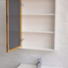 Cánh tủ gương với bản lề đóng êm, không gây tiếng ồn khi sử dụng. Tủ gương được thiết kế với các kệ có thể để các vật dụng sinh hoạt hàng ngày như kem đánh răng, bàn chải, dao cạo râu hay mỹ phẩm thường dùng, giúp phòng tắm gọn gàng ngăn lắp hơn