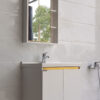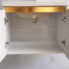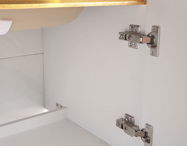 Cửa tủ được thiết kế mở với khoảng trống nằm giữa cánh và mặt đá cùng thanh chỉ màu vàng bằng Nhôm tô điểm thêm sự tinh tế cho sản phẩm.