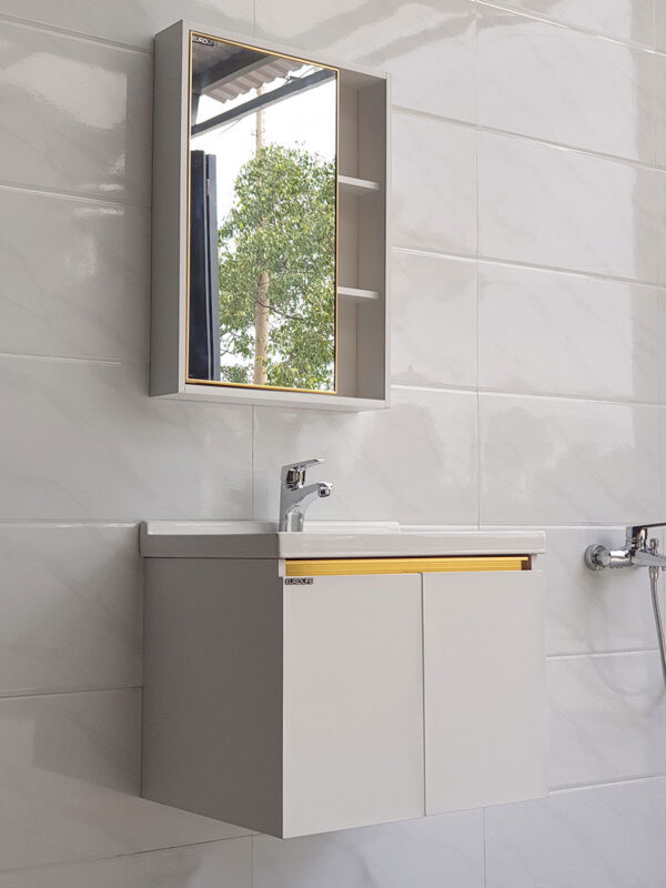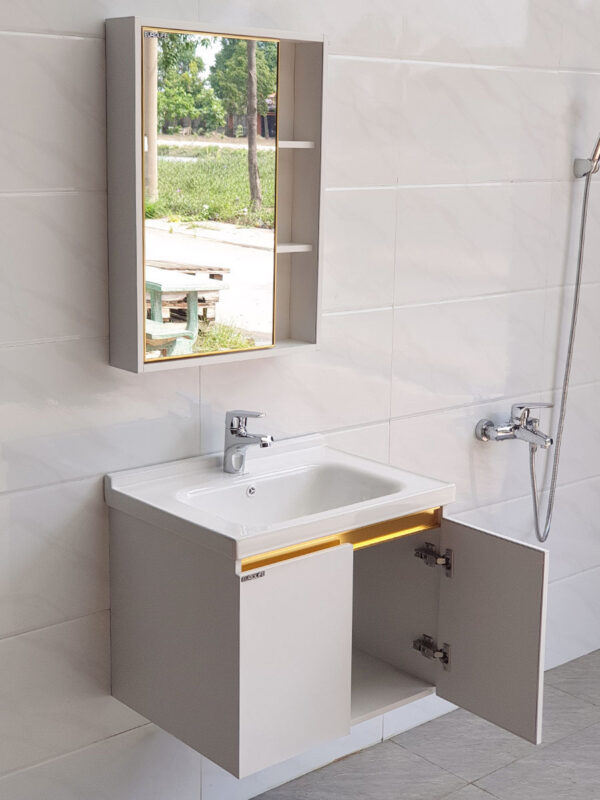 * Kích thước : Thân tủ Lavabo 600x470x510mm. Tủ gương : 700x500x125mm