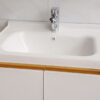 Chậu Lavabo với men sứ Nano trắng sáng, chống bám khuẩn. Thành Lavabo được đưa cao tránh văng bắn nước khi sử dụng