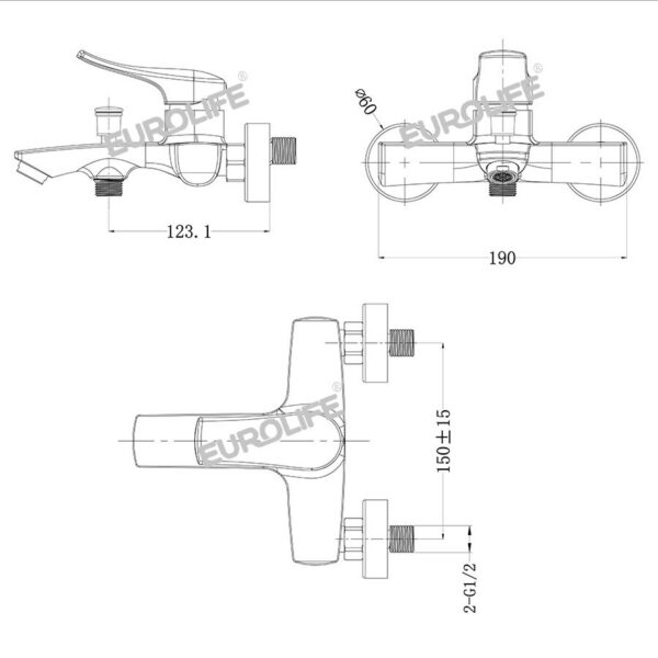 Bộ vòi sen nóng lạnh Đồng mạ Chrome Eurolife EL-ROS 01 (Trắng bạc)