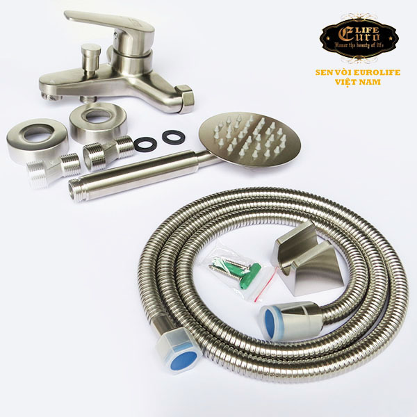 Bộ vòi sen nóng lạnh Inox SUS 304 Eurolife EL-1401 (Trắng vàng)