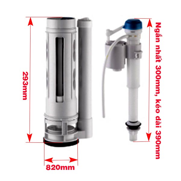 Cọc cấp nước với van phao thông minh, có thể điều chỉnh độ dài ngắn tùy theo kích thước của két nước. Chiều dài tối đa khi kéo lên tới 39cm