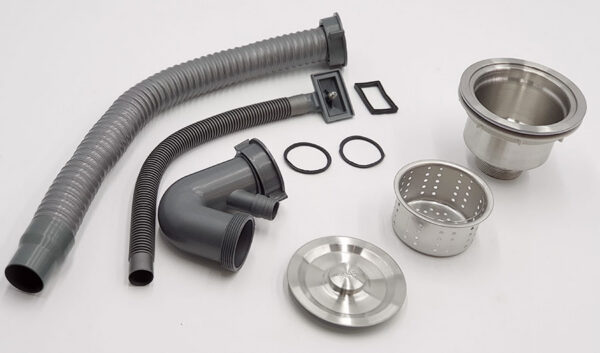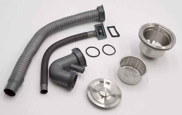Rốn xả bằng Inox 304, Bộ xả bằng nhựa PVC, ống ruột gà lõi thép