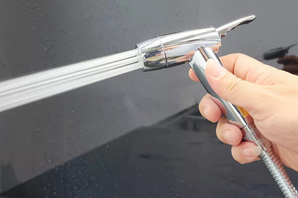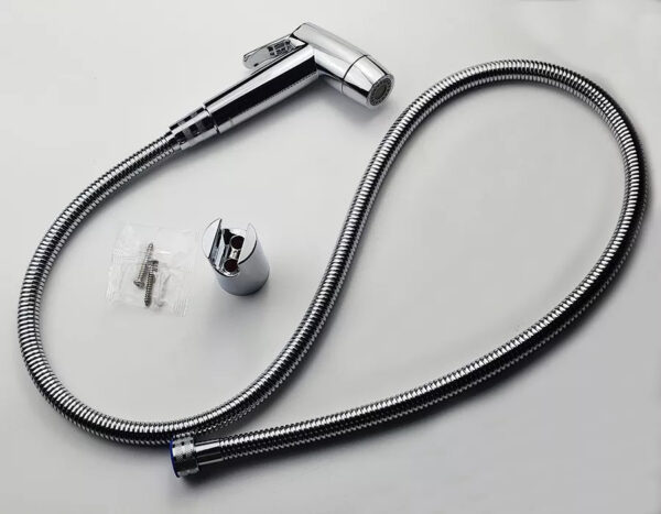 Bộ xịt đi kèm dây xịt dài 120cm với vỏ Inox 304 được mạ Chrome sáng bóng.