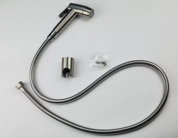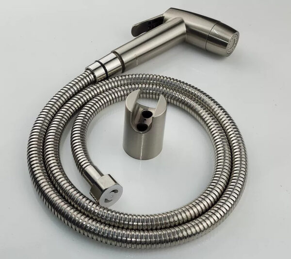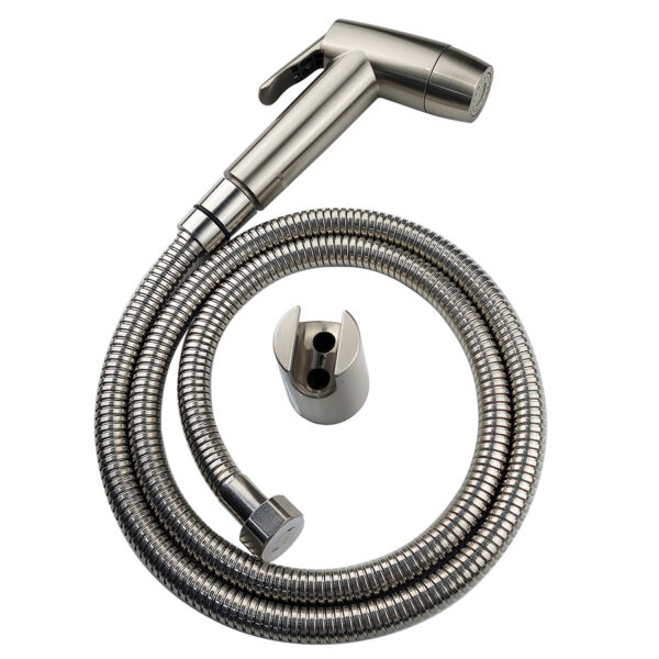 Bộ xịt đi kèm dây xịt dài 120cm với vỏ Inox 304 được mạ tĩnh nhiệt màu vàng mờ sang trọng.