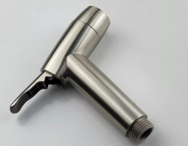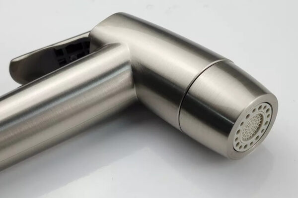 Tay xịt được làm bằng nhựa ABS thân thiện với sức khỏe và môi trường, mạ tĩnh điện màu vàng mờ sang trọng. Không bong tróc hay phai màu khi sử dụng. Nhựa ABS là chất liệu nhựa cứng, chịu lực cao, không bị bể vỡ khi rơi rớt như nhựa PVC đồng thời an toàn cho sức khỏe người sử dụng.