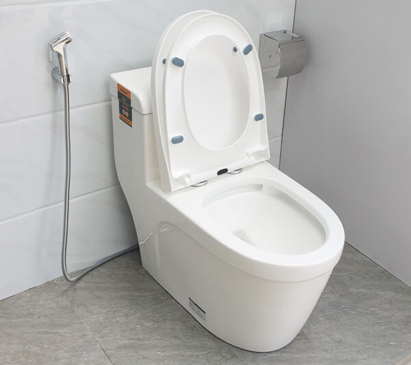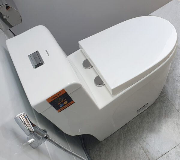 Nắp đóng êm được mở rộng, dễ dàng di chuyển. Men sứ Nano tuyết được nung ở nhiệt độ 1280 độ C, giúp lớp men sáng bóng, kháng khuẩn và trắng sáng cùng thời gian.