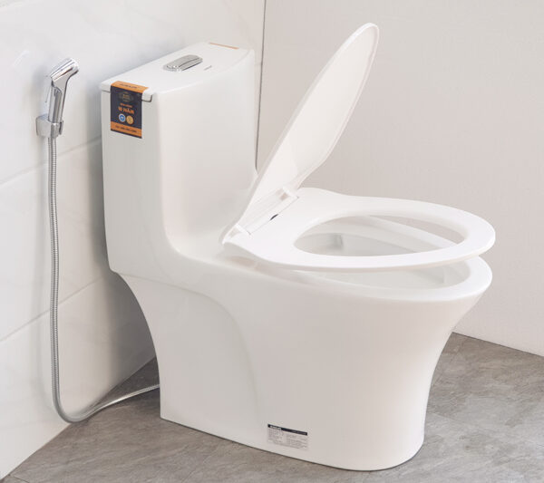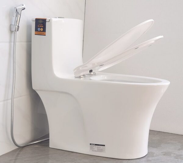 Nắp đóng êm được mở rộng, dễ dàng di chuyển. Men sứ Nano tuyết được nung ở nhiệt độ 1280 độ C, giúp lớp men sáng bóng, kháng khuẩn và trắng sáng cùng thời gian.