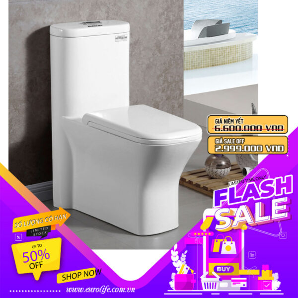 Bồn cầu 1 khối men Nano tuyết nắp đóng êm Eurolife EL-LUX 011 (Trắng)