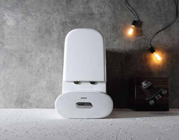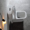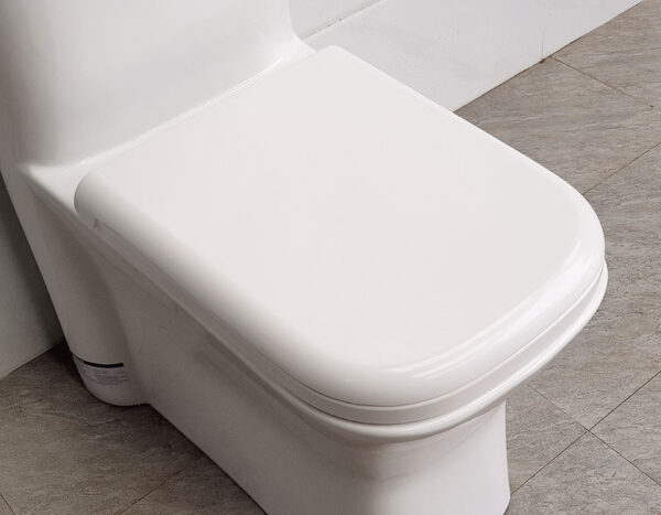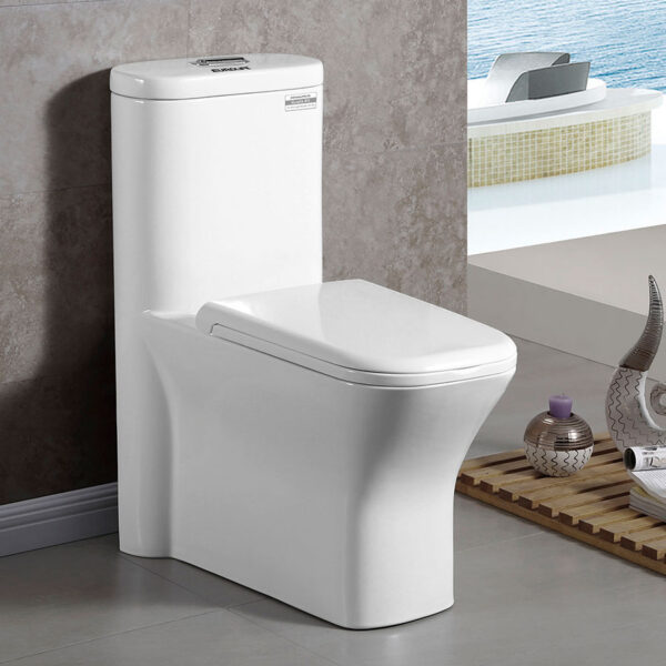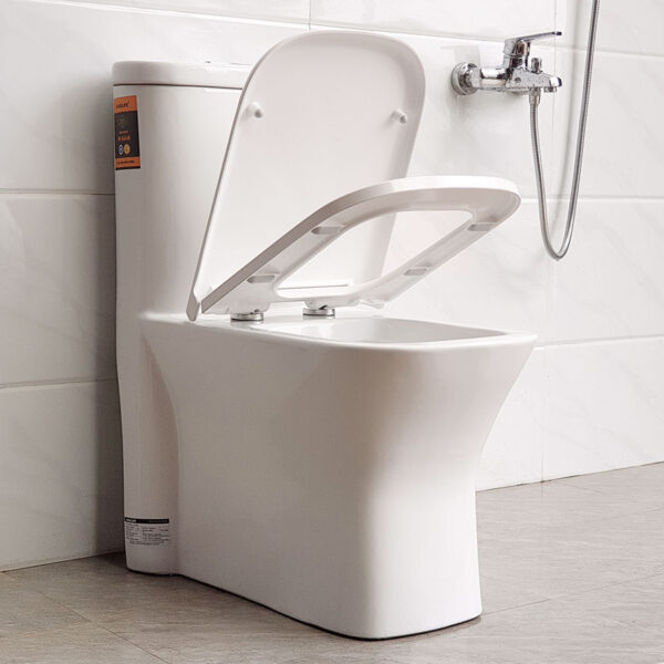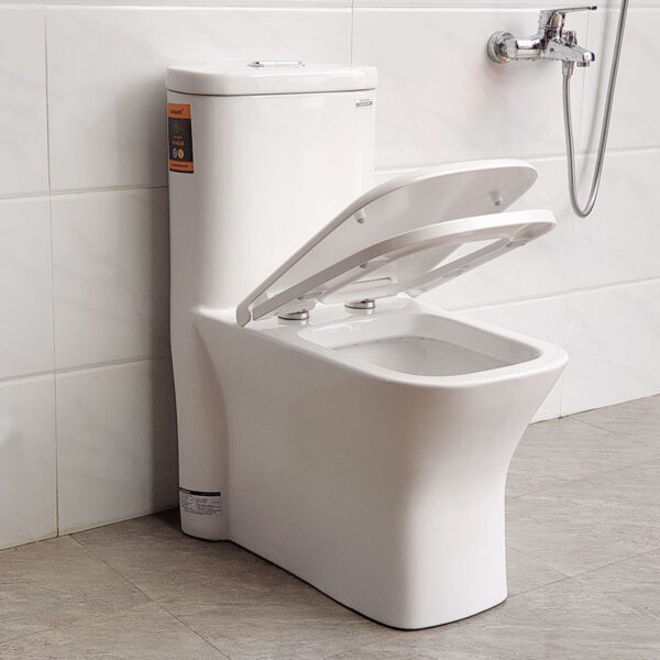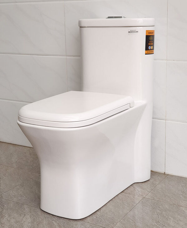 Bồn cầu được thiết kế theo cá phương thẳng kết hợp bo tròn, khỏe khoắn, tạo lên sự sang trọng cho phòng vệ sinh.
