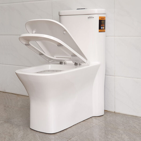 Nắp đóng êm được mở rộng, dễ dàng di chuyển. Men sứ Nano tuyết được nung ở nhiệt độ 1280 độ C, giúp lớp men sáng bóng, kháng khuẩn và trắng sáng cùng thời gian.