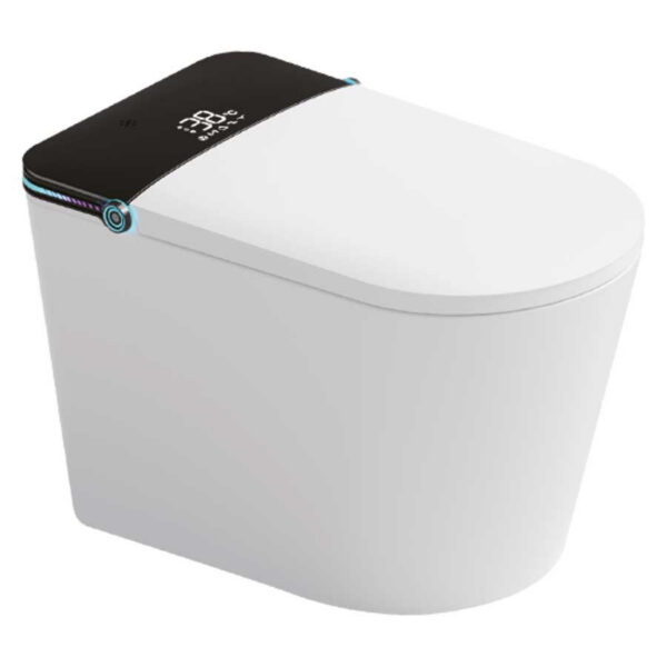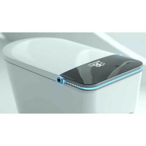 Bồn cầu thông minh Eurolife EL-SM8069D được thiết kế với màn hình hiển thị trên nắp phía sau, hiển thị nhiệt độ nước và các cơ chế hoạt động.