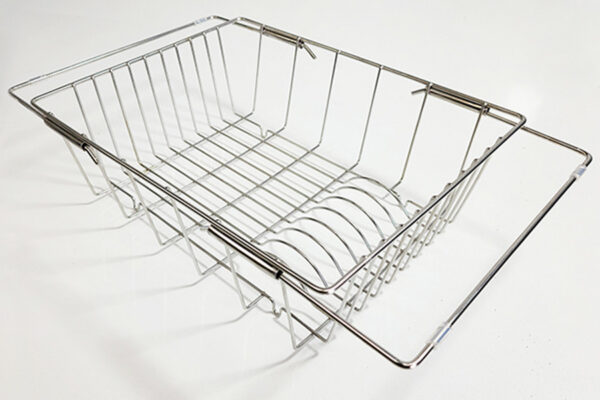Chậu được đi kèm một rổ Inox nan có thể kéo dài linh động gác cho mọi kích thước khác nhau.