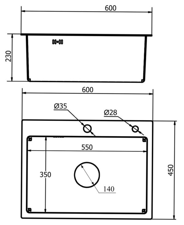 - Kích thước 600x450x230 ( Kích thước khoét đá : 600x410mm)