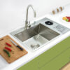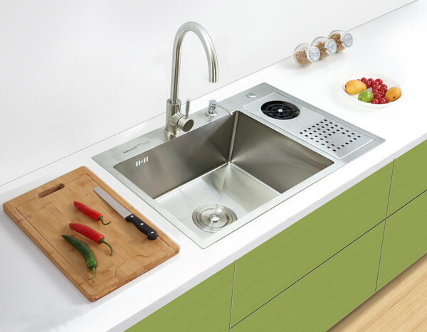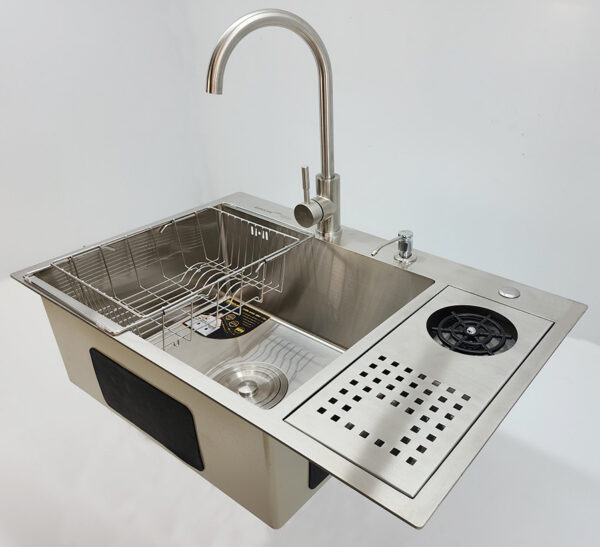 Ngoài ra chậu được tích hợp thêm một máy rửa chén nằm bên phải, tiện lợi cho công việc nhà bếp.
