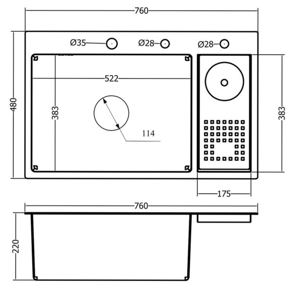 Kích thước 760x480x230 ( Kích thước khoét đá : 740x460mm)