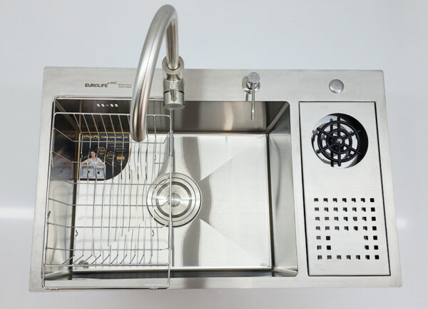 Chậu Inox SUS304 1 hố Eurolife EL-LS7648 (TẶNG KÈM RỔ, KHÔNG KÈM VÒI RỬA VÀ BÌNH XỊT)