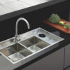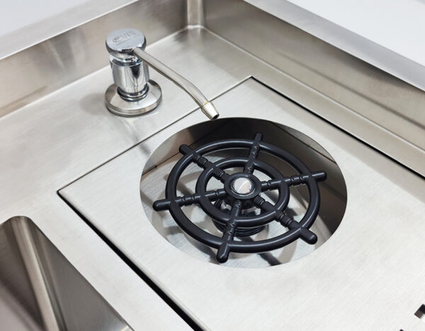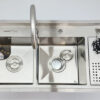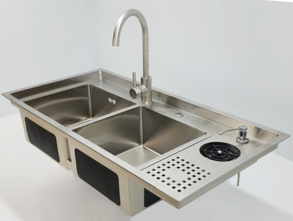 Chậu được tích hợp một lỗ chờ cho việc gắn bình xịt nước rửa chén, hoặc có thể dùng để lắp vòi nước tinh khiết.