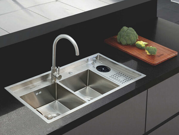 Ngoài ra chậu được tích hợp thêm một máy rửa chén nằm bên phải, tiện lợi cho công việc nhà bếp.