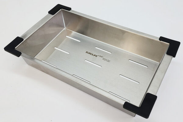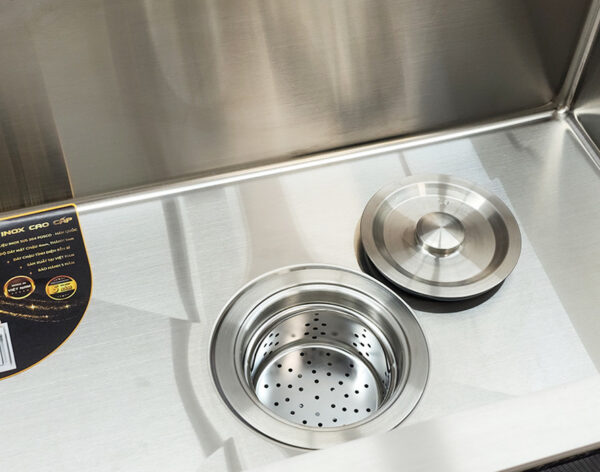 Chậu được đi kèm một rổ Inox dập nguyên tấm, chắc chắn, phù hợp với lòng chậu.