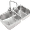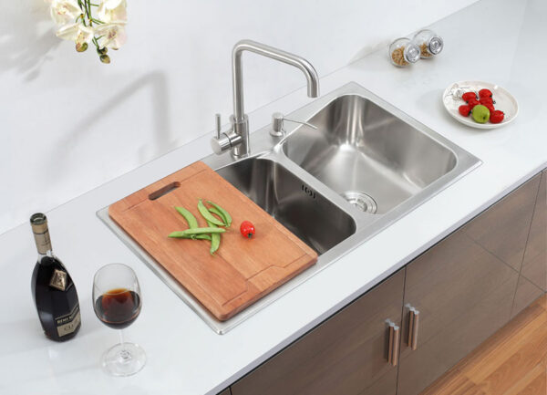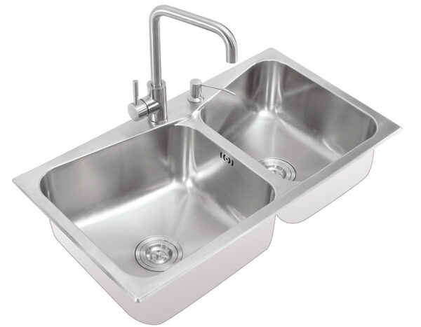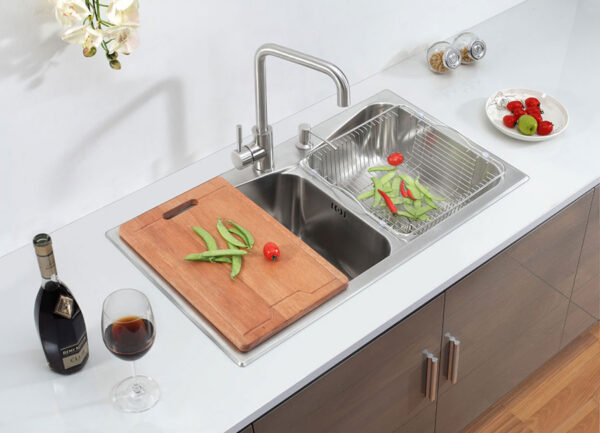 Chậu được tích hợp một lỗ chờ cho việc gắn bình xịt nước rửa chén, hoặc có thể dùng để lắp vòi nước tinh khiết.