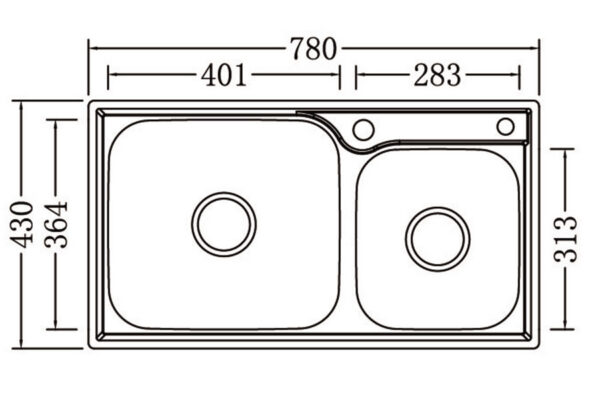 Chậu được tích hợp một lỗ chờ cho việc gắn bình xịt nước rửa chén, hoặc có thể dùng để lắp vòi nước tinh khiết.