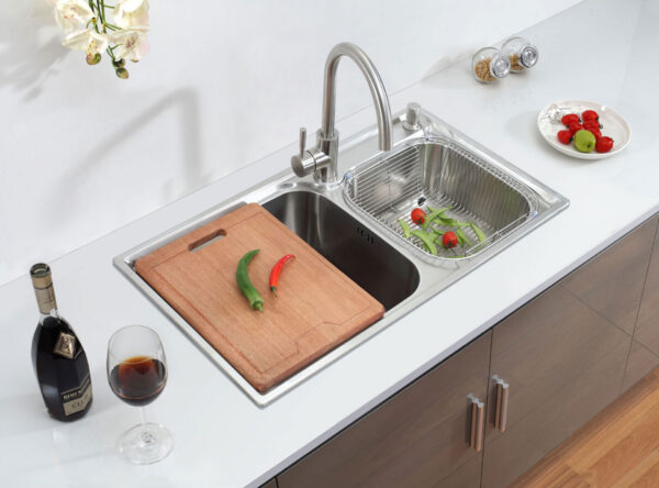 Chậu được thiết kế chắc chắn với đường nét góc cạnh, khỏe khoắn, mang lại sự sang trọng cho căn bếp hiện đại ! Xung quanh chậu là các gờ cao, chống nước văng bắn ra bên ngoài khu vực rửa, giúp căn bếp khô ráo. sạch sẽ hơn.