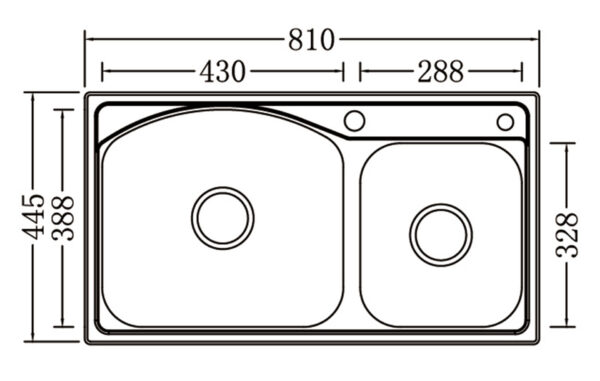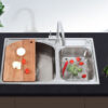Chậu được tích hợp một lỗ chờ cho việc gắn bình xịt nước rửa chén, hoặc có thể dùng để lắp vòi nước tinh khiết.