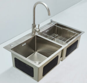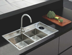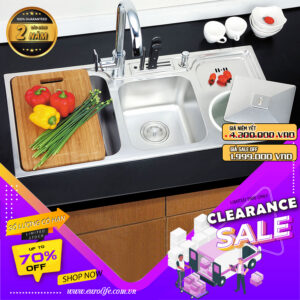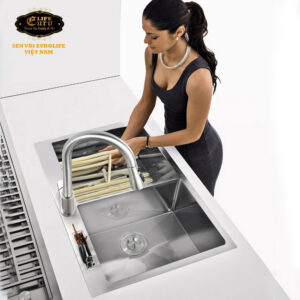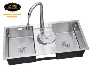 Chậu đúc 2 hố kèm máy rửa ly, chất liệu Inox SUS 304 Posco - Korea (Sản xuất tại Việt Nam) Eurolife EL-LS10050