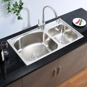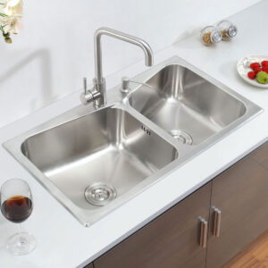 Chậu đúc 2 hố cân, chất liệu Inox SUS 304 Posco - Korea (Sản xuất tại Việt Nam) Eurolife EL-LS8245