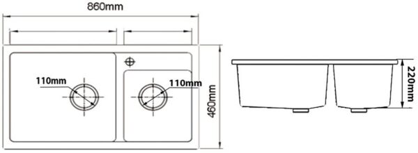 • Kích thước 860x460x200 ( Kích thước khoét đá : 830x430mm)