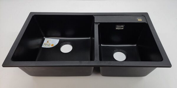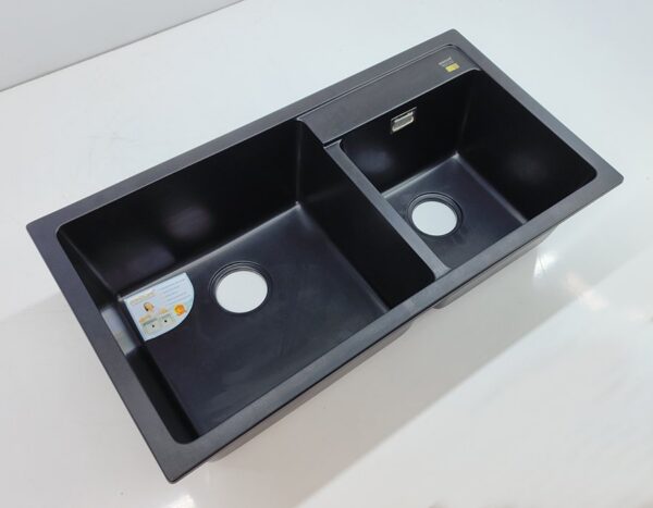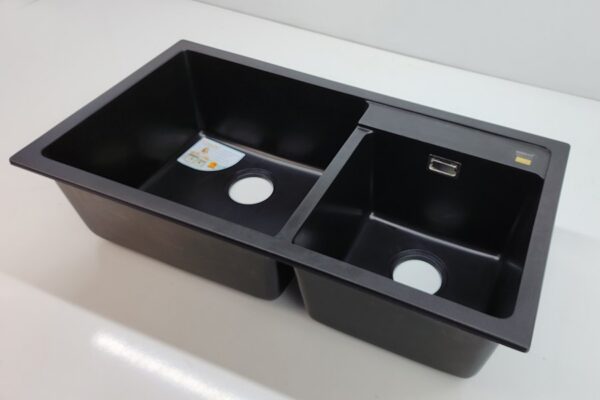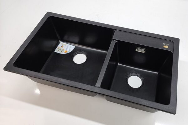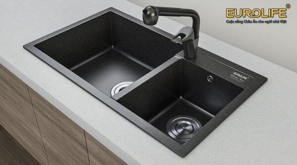 Chậu rửa chén 2 hố lệch, đá Thạch Anh Eurolife EL-QC8646 ( Đen)