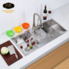 Chậu được tích hợp lỗ chờ gắn bình nước rửa chén, hoặc dùng gắn vòi nước tinh khiết bên phải chậu.