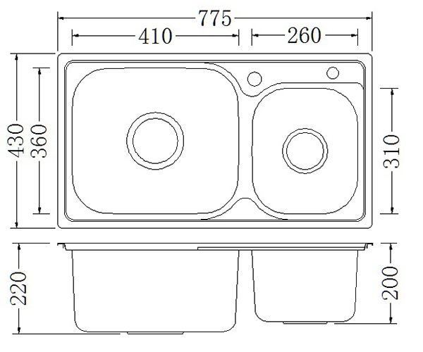 Chậu được tích hợp một lỗ chờ cho việc gắn bình xịt nước rửa chén, hoặc có thể dùng để lắp vòi nước tinh khiết.