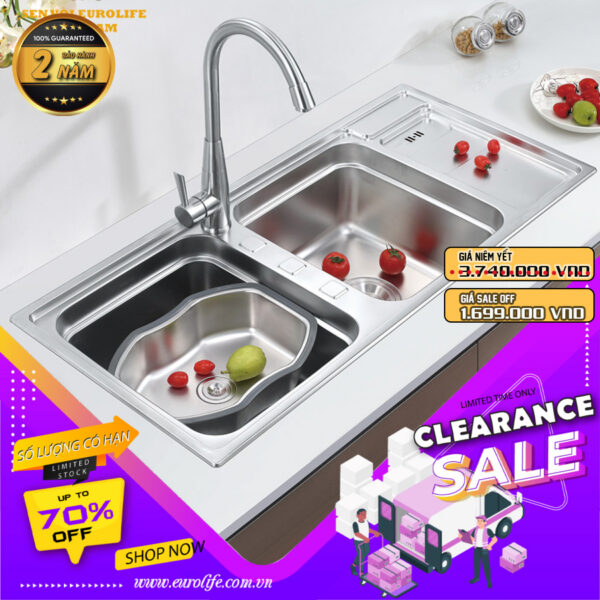 Chậu rửa chén Inox 2 hố Eurolife EL-C7