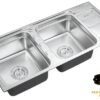 Bộ xả đi kèm với 2 rốn lọc bằng Inox SUS 304 với lọc chặn rác được làm bằng inox 304, sắc nét. Kích thước 110mm cho hộc nhỏ và 140mm hộc lớn, giúp thoát nước nhanh chóng. Bộ xả có đủ dây thoat nước cho hố rác nhỏ.