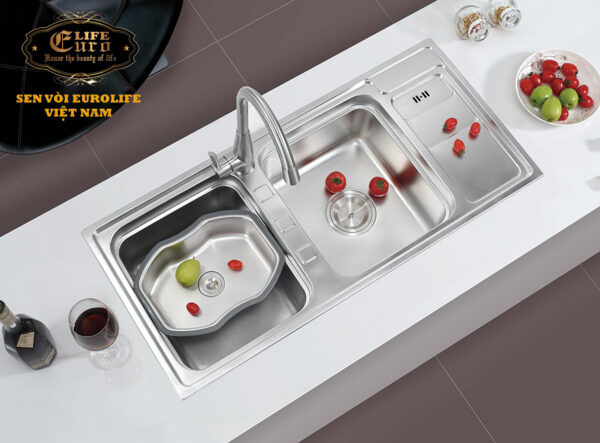 Chậu rửa chén Inox 2 hộc Eurolife EL-C7 (Trắng bạc)