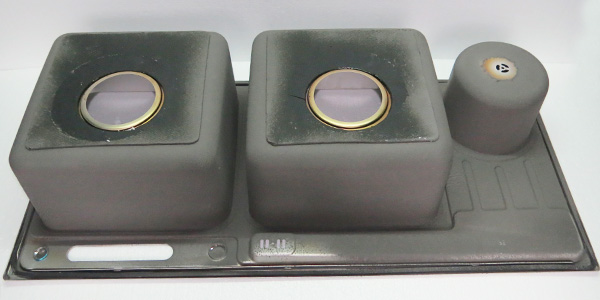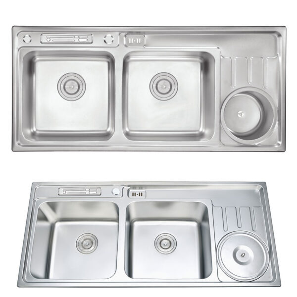 Chậu được tích hợp một lỗ chờ cho việc gắn bình xịt nước rửa chén, hoặc có thể dùng để lắp vòi nước tinh khiết.