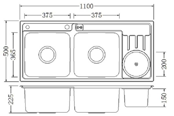 | Kích thước hố chậu trái | 375 x 365x 230mm |